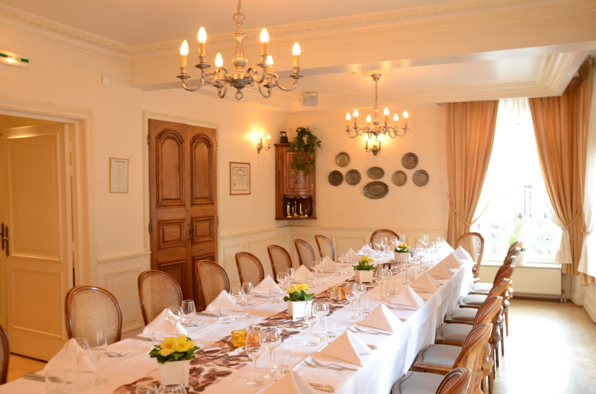 Nous accueillons vos repas de groupe, événements privés ou professionnels dans une salle dédiée, chaleureuse et entièrement équipée.